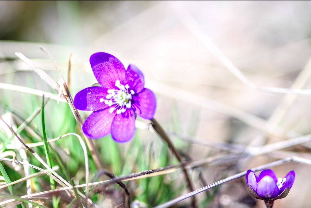 ”Mentiin sinne katsomaan olisiko sinivuokkoja jo noussut ja niitä oli siellä jo tosi paljon. Mietin miten ottaisin kuvan ja menin makaamaan kukkien viereen ja otin kuvin isän kameralla makrolinssillä.”