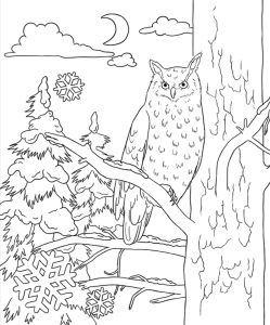Väritystehtävä: Huuhkaja talviyössä. Tulosta tästä